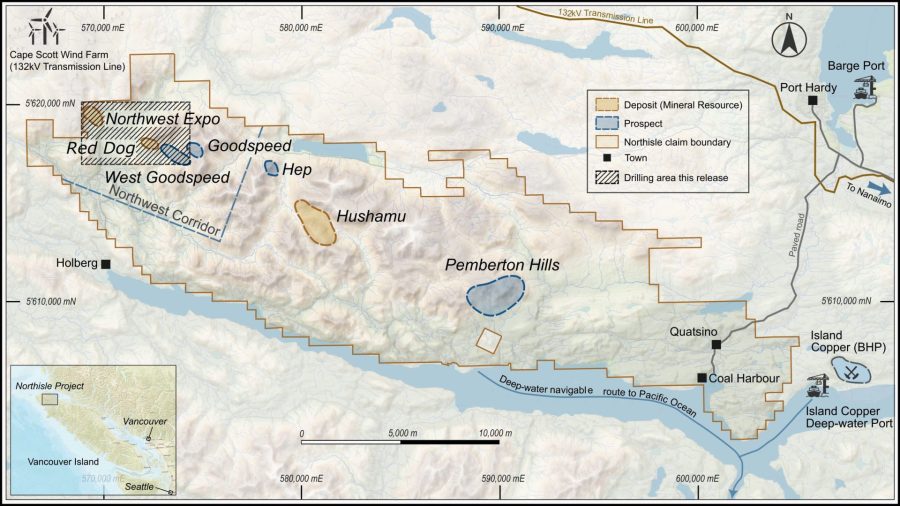 Northisle Copper and Gold Inc. is a Vancouver-based company whose mission is to become Canada’s leading sustainable mineral resource company for the future. Northisle, through its 100% owned subsidiary North Island Mining Corp., owns the North Island Project, which is one of the most promising copper and gold porphyry projects in Canada. The North Island Project is located near Port Hardy, British Columbia on a more than 34,000-hectare block of mineral titles 100% owned by Northisle on a belt stretching 50 kilometres northwest from the now closed Island Copper Mine operated by BHP Billiton. Since 2021, the Company has discovered two significant deposits, expanded resources, demonstrated the economic potential of the project, and is now focused on the development of this compelling project while exploring within this highly prospective land package.